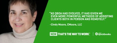 Welcome back to our Firm of the Future profile series about thriving firms who are benefitting from the cloud and QuickBooks® Online Accountant (QBOA) to better serve clients and find new revenue opportunities. In this new article, we spotlight Cindy Moore, owner of CMoore, LLC.