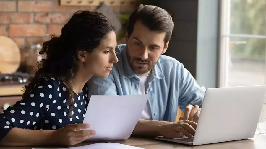 A couple reviewing their financials on a laptop.